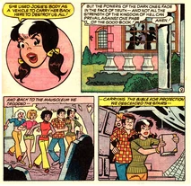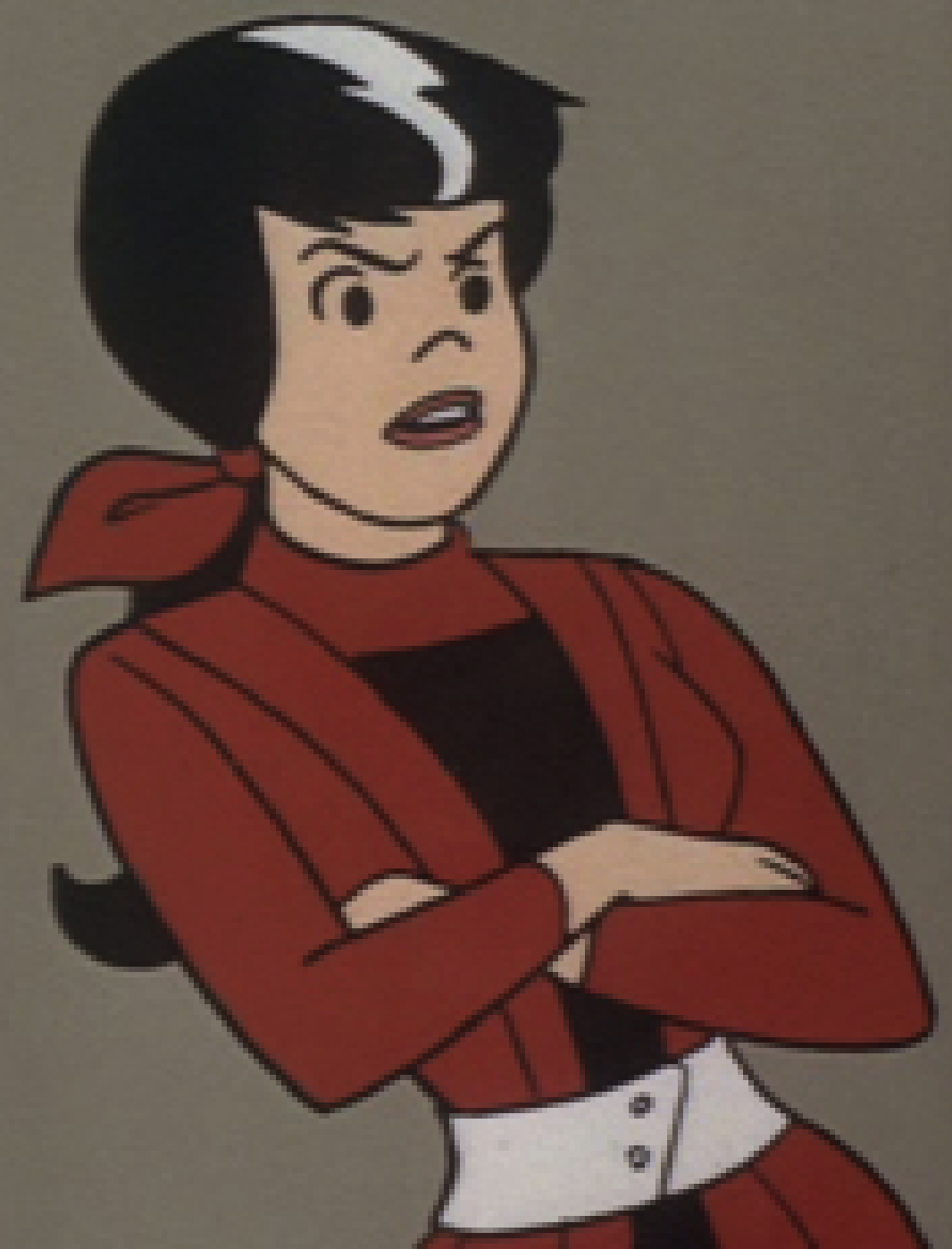 In the cartoon series, Alexandra is not a witch..but jealous. Alexandra is the only girl who is not a Pussycat band member of the Josie’s trio but still a member of the group. She is identified by her long black pony-tailed hair with a white streak through the center of it, possibly suggesting a skunk or polecat. Alexandra is Intelligent but also ignorant, selfish, self absorbed, mean-tempered, obnoxious, grouchy, cranky, lazy, and a bully. Alexandra is Alexander's twin sister. She appears to have no identifiable role with the band nor any reason for associating with it, other than the fact that she is Alexander's sister and ally who tries to be the leader, although she can be quite a good dancer but with some comical results. She is constantly bitter and jealous of the band's success without her, believing that she should be "the real star of the band", and constantly plots to steal the spotlight (and Alan's affections) from Josie, only to have every scheme fail in humiliating fashion, which she is considered as a fun show stealer. It's somewhat common for many of the humiliations and comeuppances Alexandra receives in this way to involve some form of pain to her bottom. Alexandria is also shown to be very lazy, expecting others to do even the simplest tasks for her. Despite her jealousy, she remains very loyal and quite caring to the group and will usually fight with them against villains, using her brash personality to intimidate the opposition. In two episodes, however, she departs from her villianous role: In "Never Mind a Master Mind" Contrary to her usual comic relief role, Alexandra uses the anti-gravity ray gun to save her friends from Mastermind. In "Plateau of the Apes Plot", her brother Alexander angers her so much with his bragging about his "heroics" when he was turned into a ape, she shuts him up with a banana! A second season of the series was introduced as "Josie and the Pussycats in Outer Space" {In this "Lost in Space" version the gang is trapped in Outer space and into even more crazy adventures]. The last cartoon episode featuring "Josie and the Pussycats" was when the gang guest-starred as themselves on an episode of "The New Scooby Doo Movies" ["The Haunted Houseboat"]. Ironically after the "Josie" series ended, reportedly there was an attempt to place for four of the "Josie and the Pussycats" characters [Melody, Alexander, Alexandra and Sebastian the Cat] in a new cartoon series "Laff-a-Lympics" as members of a sports team but it did not work out.