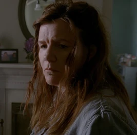 It was later in the episode that Alicia's incestuous persona was revealed, as she laid next to Kyle in his bed and began kissing him, while placing her hand down his crotch as Kyle was crying. Later on, the evil Alicia confronted Kyle and demanded to know why he hadn't been talking to her (unaware that Kyle's resurrection had hampered his speech), while callously defending her abusive ways. The villainess attempted to seduce her son even more , only for Kyle to shove his mother away and scream, "NO!"; his first word since his resurrection. Kyle later grabbed a trophy from his shelf and bludgeoned Alicia to death.