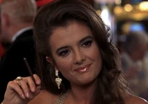 Alotta makes her first appearance at a Las Vegas casino. She is wearing a low cut, gold evening dress. She acts as the arm candy for her boss, Number Two, as he plays blackjack. At one moment she exchanges a flirtatious glance with the film's hero, Austin Powers (Mike Myers). Austin is accompanied by his partner, fellow British agent Vanessa Kensington (Elizabeth Hurley). Between hands, Number Two introduces Alotta as his "Italian Confidental Secretary". Austin is understandably shocked by her suggestive sounding name. Keeping his own identity a secret, Austin employs the alias "Richie Cunningham".