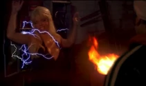 The Decoys are chased to the hospital. Nick enters a dark room holding a flaming can for defense. Angeline attempts to seduce him and even changes clothes in this attempt. However, Peter Brunson (Ryan Ash) shows up and reminds Nick that she is not human. Nick uses the flame to back Angeline up. She bumps into the electrical outlet and gets electrocuted. While she is being electrocuted, she changes into her alien self and eventually burns up into dust.