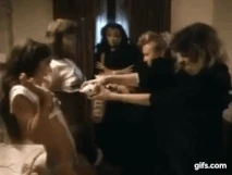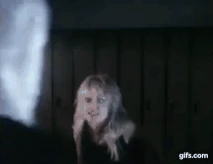 Imp takes possession of the sorority girls in the camera watching. Frankie (Carla Baron) is turned into the Bride of Frankenstein and Rhonda is turned into a demon zombie minion while Babs flees and avoids the curse. However, while fleeing she touches the mall's electric doors and is knocked out unconscious.