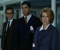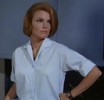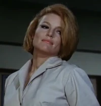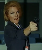 Bobbie is an international spy boss. She uses her subordinate Bronwyn (Nancy Kovack) to infiltrate the NASA facility.