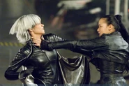 Callisto was the leader of a small band of outcast mutants, sometimes known as the Omega or indirectly called the Omega Gang. After a cure for mutants had been created, the Omega mutants have allied with the Brotherhood of Mutants led by Magneto. Callisto seemed an aversion Storm to cherish, because they had attacked the fighter of the X-Men again. She was eventually defeated by Ororo Munroe/Storm during the final battle on Alcatraz Island where she was thrown against an electrified fence and electrocuted to death.