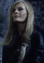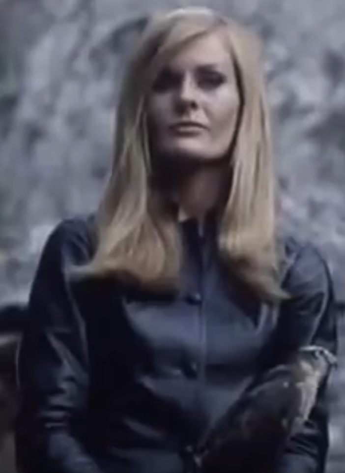 Carole is a henchwoman for Hugo (Hans Meyer). She has a delicious cruel streak, dons a whip, and carries around a pet falcon to help in her hunts and attack.