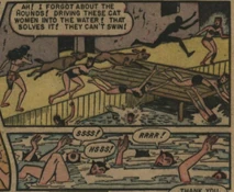 Some hound dogs arrived from the Commissioner, and drove the Cat Maidens into the river. This was a problem, since the cats could not swim, and they drowned.