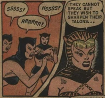 Cat Queen was the villainess in the 1948 episode "The Cat Killers" #12 for the comic book, Jungle Adventure, which was the precursor to Rulah, Jungle Goddess.