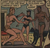The Cat Queen runs a kingdom with slave natives and a team of non-speaking Cat Women, which she also refers to as the Cat Maidens . She captures natives and makes them her slaves.