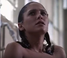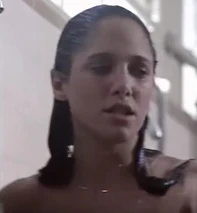 While in in a game of water polo during swim class, she is suddenly pulled under water by some kind of force...the mirror. She struggles to get to the shallow end, and then claims that it was Nikki Chandler, played by Kristin Dattilo, who tried to drown her. A catfight in the water takes place, and she is kicked out of the pool by the teacher who tells her to go to the showers.