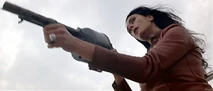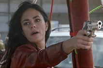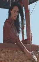 Bond offers her protection from her real boss, but she refuses, asserting that Bond cannot protect her from "him". She then commits suicide by shooting the aircraft's gas tank, causing the balloon to explode in a huge fireball. Bond releases from the rope and falls onto the roof of the Millennium Dome, hurting his shoulder on the landing. This injury hampers him throughout the rest of the film. We later learn in the film that she was working for Renard or his full name, Victor Zokas (Robert Carlyle). She was hired to keep an eye on Mr. Lachaise.