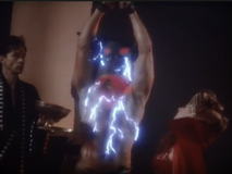 Corva soon realizes that the ancient scrolls won't work without a nefarious ritual requiring royal blood, and that the blood she used from the guards was insufficient. As a result, she sacrifices her own daughter Raven without a second thought, by stabbing her through the chest while strapped onto an altar. She then annointed Raven's lover Bolt with the blood, and made him an invincible warrior, and saudered a metal helmet over his head.