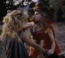 Corva's daughter Raven (Carlton Elizabeth), is a hedonist who believes in achieving her own sado-masochistic pleasure. The two cousins, Raven and Fiona get in a catfight. Fiona escapes and Corva tortures the guards that were left in charge of guarding her. She then uses the blood from the guards to sprinkle on the sword in order to get the power for herself.