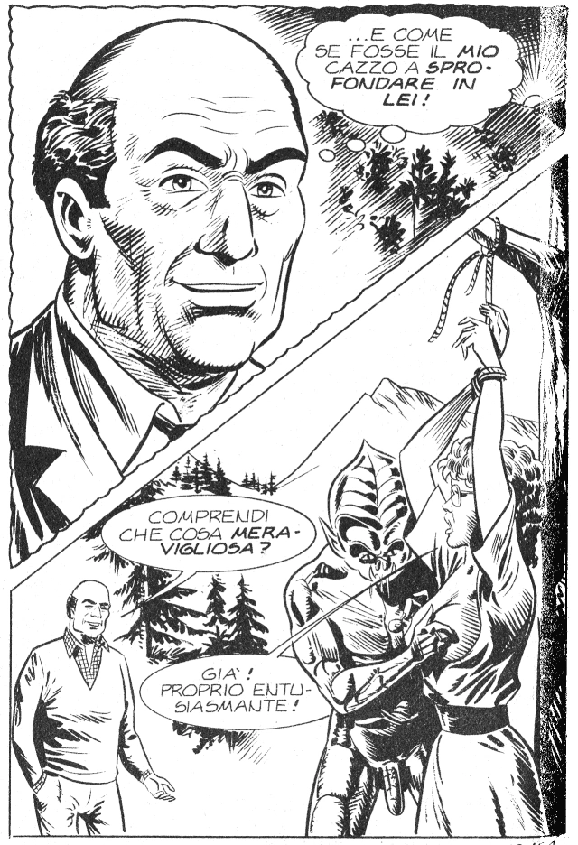 Her hunch is correct. After getting herself captured, Clerkenwell reveals to her that he discovered and befriended the creature, which he explains is an alien from a distant planet. He further divulges that he and the alien communicate telepathically, and that the creature benefits from the partnership by getting food and shelter, while Clerkenwell benefits by getting to feel the exact same sexual sensations whenever the alien climaxes.