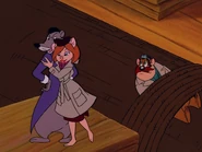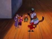 Monty tracks Desiree and Erol to the airport, where the two villains (hiding inside of a crate) intend to jet south for a tropical vacation. The Rangers knock Erol off the crate and into a dog-carrier where he's mauled. Desiree briefly laments the loss of him before dismissing that he was becoming a bore and is sure she'll find another man soon enough. Monty tries to catch up to Desiree, clinging to a label, but she blows some of her powderpuff in his face, making him lose his grip and fall, with her taunting him one last time. Fortunately, Zipper manages to place the shipping label Monty was hanging on to over Desiree 's own; ensuring the rosewood chair will stay where it belongs and sending Desiree to Canada instead, where her boss - who is desiring the rosewood chair - awaits.