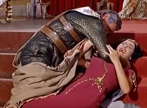 After freeing Ursus, he is led out of the palace in a tunnel by a servant (Maria Luisa Merlo, who is also knwon as Mary Marlon). She then returns to the royal chamber and attempts to kill Annia with a large knife. However, the king returns to see this attempt, and chokes Diar to death on the steps.