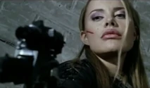 In a raid of the gangs arms deal, she gets in a catfight with the hero's partner Samantha (Sandra Leonhard), where she receives a slash to her face. She eventually turns the table on her enemy by knocking her down a flight of stairs to her death. She is about to be hancuffed by special agent McMurphy (Tyrone Ricketts), but is able to get away.
