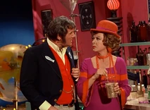 Commissioner Gordon receives a call from her saying that she will steal the famous Mope Diamond from Spiffany's jewellery store at precisely two o'clock. Batman is informed and the Caped Crusaders set off straight away. Joined with Batgirl (Yvonne Craig), they find Dr. Cassandra and Cabala at the jewellery store, trying to steal the diamond. She fires her ray gun at them, taking away their 3-Dimensional forms and making them as flat as cardboard picture boards. With the Terrific Trio immobilized. Cassandra and Cabala then steal the diamond and make their escape.
