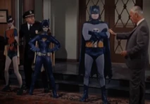 As the final insult, they later slide the flattened Caped Crusaders under the doors of Police Headquarters, where Commissoner Gordon and Chief O'Hara find them. After finding no way of restoring them, they use the Batphone to contact Alfred Pennyworth (Alan Napier) and ask him to help them.