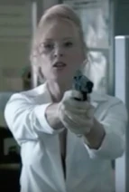 Dr. VanHelm is a molecular scientist hired by Sylvian (Tony Todd), a powerful 300-year old vampire, to find a cure for surviving in the sun. She uses three vampire women as guinea pigs to test the serum.