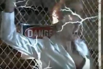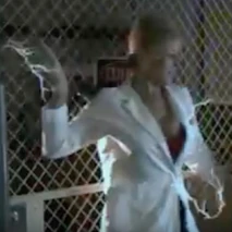 Van Helm is then attacked by Shayla (Melissa Brasselle), one of the vampires, who throws the scientist against an electric fence. VanHelm fries and screams for a while and then slumps to the ground dead.