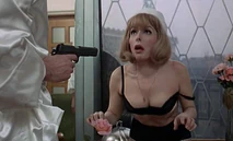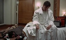 In the film, the pro-American Right superhero, Mr. Freedom (John Abbey) is in his hotel room in Paris, when the false hotel maid is trying to serve him poisoned breakfast. However, he reveals her true intent. He humiliates her by forcing her to strip down to her bra and panties at gun point. Then he has her taste the eggs she tried to serve him on his room-service tray. The maid dramatically drops to the ground and dies from the poison. Mr. Freedom then contemptuously kicks her corpse over as he goes to shoot the False Maid's fellow male assassin hiding in the room who allowed her to die. Freedom then makes his exit as the real Hotel Maid arrives with his real breakfast, leaving her speechless at the two bodies laying sprawled in the room.