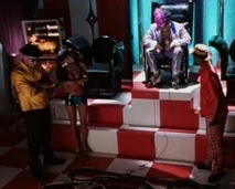 Later they show up at the carnival armed with laughing gas in balloons that they plan on releasing to the air. Giggles is dressed with a clown mask along with an Octoberfest-like wench outfit. Darcy recieves help from Argyle who helps her reverse the air flow. Instead of the crowd laughing uncontrollable, the gas only effects Prankster and his gang. Prankster is knocked out by Black Scorpion and the rest of his gang is apprehended.
