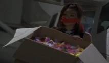 Scorpion gives chase as the gang takes off in an ice cream van. When she gets close, Giggles and the henchmen throw bombs from the backend at Scorpion's car and get away.