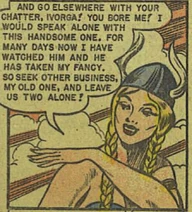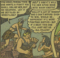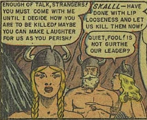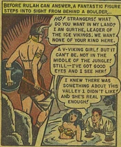 Gurthe, the Viking Queen was a villainess who appeared in the 1949 episode "The Ice Vikings of Valhalla" for the comic bood, Rulah, Jungle Goddess.