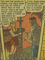 Rulah and Tom Preston are on a safari. They happen across an uncharted valley, and are suddenly confronted by a group of Vikings led by a statuesque blond named Gurthe. Rulah and Tom are taken captive and led to a cold and gloomy cave, where they are placed in chains.The prisoners are put to work stacking wood.
