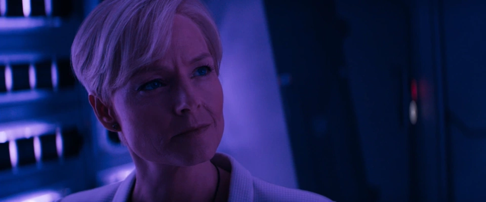 Jessica's first appearance in the film (which is set in 2154) had her being informed that three unauthorized shuttles from Earth were approaching Elysium. Overriding Executive Order 355—which prohibited her and her subordinates at Elysium's Department of Defense from using their sleeper agents on Earth—she authorized Agent C.M. Kruger (the film's secondary and eventual final antagonist) to kill everyone aboard the aforementioned shuttles, establishing her manipulative and unfeeling demeanor. While he managed to succeed in shooting down two of the three shuttles, killing 46 people, the last missile missed its target, allowing for the remaining shuttle to land on the space station. The villainess ordered for all of them to be apprehended and deported back to Earth, after which she was summoned to be reviewed by President Patel and his cabinet.