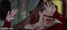 In what appears as a ploy to win Prospero's affection back, Juliana expresses her wish to Prospero to be initiated into his Satanic cult. She first performs a ritual in the Black Room, where she pledges her soul to Satan. Juliana also brands one of her breasts with an upside down crucifix. Then in a very strange dream type sequence, Juliana puts her through her final initiation ceremony, where she drinks from a chalice and suffers a terryfying hallucination. This dream starts out with her tip-toeing through a mysterious forest in what appear to be ballet shoes, while wearing a very transparent negligee. She then finds herself lying on a four-poster bed, surrounded by brass gargoyles. She is not bound, but seems unable to move as a series of demons penetrate the transparent curtains around her. They attack her with knives, scythes and ceremonial swords. The first demon comes in the form of a Polynesian warrior, the second some kind of Greek Gnostic, the third an Egyptian priest, and the fourth an African prince. Awakening from her dream, Juliana then declares herself the wife of Satan, proud that she has survived her own sacrifice.