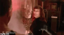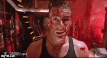 The climax comes in the boiler room where the muscular Kara fights Danielle's boyfriend, Alex. Kara drops from overhead and wraps her legs around Alex's neck, attempting to crush it with her thighs. Alex turns to face the backless catsuit wearing Kara, and after much struggling, pulls her down from the grating above. Kara boxes his ears and then pulls out her bailsong. After taunting Alex ("It's you and I, dickhead. Come on!"), the two of them circle each other, only breaking eye contact to size one another up. Kara strikes first, slashing Alex across his stomach, then grabbing his testicles. To prevent her from ripping them off, Alex grabs her wrist, then gives her a brutal haymaker to the face that knocks her across the room. Unlike some of the other henchmen, Kara recovers quickly and attempts a pipe shattering kick to the brother. But Alex is ready and dodges and grapples her. As he grabs her knife hand, Alex wraps his other arm tightly around Kara's midriff and hugs her to him. Now, fully restrained, Kara can only helplessly watch as Alex slowly but surely pulls her bloodied knife towards her waist. Thinking the fight is done, Alex lets himself get distracted during the arm struggle by his brother arriving on scene, giving Kara enough slack to twist herself around and pin his neck. However, this last desperate attempt is not enough, and all she accomplishes is staring Alex in the eyes when her arm finally gives out and the knife penetrates her abdomen.
