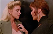 Kara handles Griffith's dirty work with her signature weapon, a balisong. She lusts after Danielle (Alonna Shaw), who searches the offices for evidence to help the brothers. Kara's suspicions and lust leads to her searching, sexually molesting, and bugging Danielle. Her bug would allow her and the other triad henchmen to ambush Chad, one of the brothers. Though Danielle and Chad escape, she'd track them to their hideout. Again, the brothers alluded her, but she was able to capture their companions and bring them to a tanker. Their, in the boiler room of the ship, Kara tortured the brothers' companions for information.