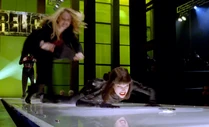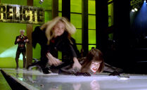 At the fashion show, Matilda tries to intercept Derek, but Katinka thwarts her. As Derek takes the runway, Mugatu's DJ starts playing "Relax", activating Derek's mental programming. Before Derek can reach the Prime Minister, Hansel breaks into the DJ booth and switches the music to Herbie Hancock's "Rockit", breaking Derek's conditioning. Hansel and the DJ have a brief "breakdance" fight before Hansel eventually unplugs the system, moments before Derek was about to snap the Prime Minister's neck. Hansel then tries to tell everyone Mugatu's plan. Angered, Katinka flips onto the stage and points a gun at Derek, but Hansel snatches the gun away, using a yo-yo, while Matilda kicks Katinka's feet out from under her, causing her to fall. Matilda grabs Katinka's gun and points it at Katinka, who mocks her, saying she doesn't have the guts. Matilda hits Katinka in the face with the gun, causing her mouth to bleed. Mugatu's plan is thwarted and he is arrested, while Derek is thanked by the Prime Minister.