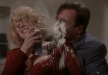 Later, Ned's secretary Laura tells Ned about Lana's plans to kill him, having firgured it out herself. Upstairs, Lana is attacked by Lola, who drowns her in the bathtub. While Ned goes upstairs to investigate, Laura's abusive husband (whom she'd escaped from three years ago) comes in and confronts her. She kills him with a frying pan. Lola and Ned fight, and Lola falls to her death from the second-floor landing after Ned pushes her back with a powered-up hair dryer through a broken handrail (which Lana had sawed off earlier). As Ned and Laura embrace each other (and Ned throws his badge away), Lola and Lana come back to life and attack. Laura shoots them both, and Ned and Laura marry a few days later.
