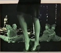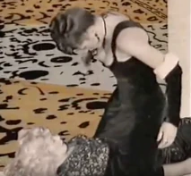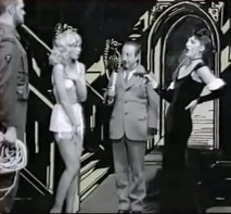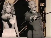 The colonel entered the room with an elephant gun, and forced the German's to drop their weapons. While Jane was using the phone to call headquarters, the Colonel got surprised by having his wife (Nancy Nevinson) drop by. This startled the Colonel and he shot up into the air. In the process, Lola and the spies were able to once again get the upper hand. Lola had the British tied and and placed on the ground. She then informed them while pointing her pistol, that within 15 minutes, she would have soldiers of the Third Reich invade the premises. While Lola began singing a tune with the the name Lola in it, the Colonel got reprimanded for being tied up back to back with a half naked girl (Jane).