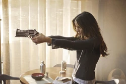 Waking up in an ambulance, Quaid is greeted by Melina. When he notices that she is missing their matching hand scar, he realizes that she is Lori using a holographic disguise; they fight and Lori is killed.