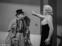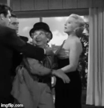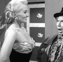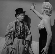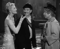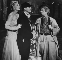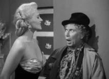 At the theater, meanwhile, unemployed entertainer Faustino the Great (Chico Marx) asks Mike Johnson (Paul Valentine) for a job as a mind-reader, and when Faustino's clever improvisation stops the show's backer, Mr. Lyons (Leon Belasco), from repossessing the scenery, Mike gratefully hires him. Harpo, who is secretly in love with dancer Maggie Phillips (Vera-Ellen), Mike's girl friend, gives her the sardine can, and she says she will eat them tomorrow. A policeman sees Harpo inside the theater and brings him to Madame Egelichi, who turns Harpo over to her henchmen, Alphonse (Raymond Burr) and Hannibal (Bruce Gordon) Zoto.