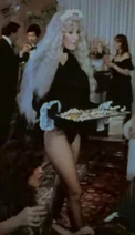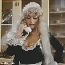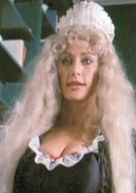 Throughout the film, Maid Marian wears a sexy black French Maid outfit with black fishnet stockings. She also sports an obviously fake blonde wig. She checks in with her mobster boss by phone throughout the film.