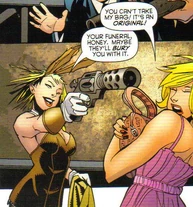 March Harriet, also known as Harriet Pratt, is a grifter and escort who wears a rabbit themed outfit. Eventually, she was enlisted by Tweedledum and Tweedledee to serve as the March Hare for their new Wonderland Gang.