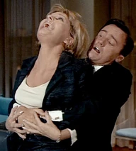 Napoleon sets about seducing Margo, which turns out to be not especially difficult. He purrs a few lines about her “keen sharp mind in a soft, voluptuous body”, and she melts in his arms. Margo responds, “I thought bankers only dealt with one kind of figure”.