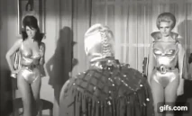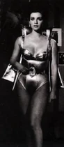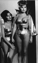 The four Martian Women consist of Aphrodite (Maura Monti), Selena (Eva Norvind), Diana (Belinda Corel), and Artemis (Gilda Miros). They wear silver one-piece swimsuits, and wear silver capes. They have control belts around their waists, and wear flat-topped helmets that have an ‘astral eye’ embedded in the center. This astral eye is a weapon that vaporizes people.
