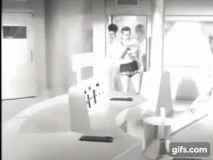 The Martian’s are led by Argos (Wolf Ruvinskis). Before landing, the Martians announce their intentions by interrupting television broadcasts around the world. Initially everybody thinks their television is on the fritz, but slowly, the Martians come into view. The leader announces that they are from Mars. He states: ‘Instead of using your scientific advancements to better humanity, you Earthlings use them for your own destruction. When you wage war with conventional weapons you are the only victims of your ambition and selfishness. But with the discovery of nuclear energy and your mad experiments with the atomic bomb, you are on the verge of destroying the entire planetary system.’