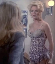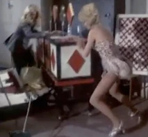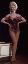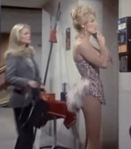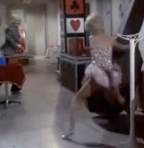 Mary Ann plays a Magician's Assistant for The Great Danzini (Rudy Solari). She wears a sexy showgirl type outfit which consisted of a pink and silver sequined costume that had a ruffled front piece and ostrich feathers that hung down in the back to portray a tail. She had stockings that covered her gorgeous long legs and pair of silver high heels. Mary Ann wore her long blonde hair up on the top with a bun in the back, and allowed it to drop down on the sides.