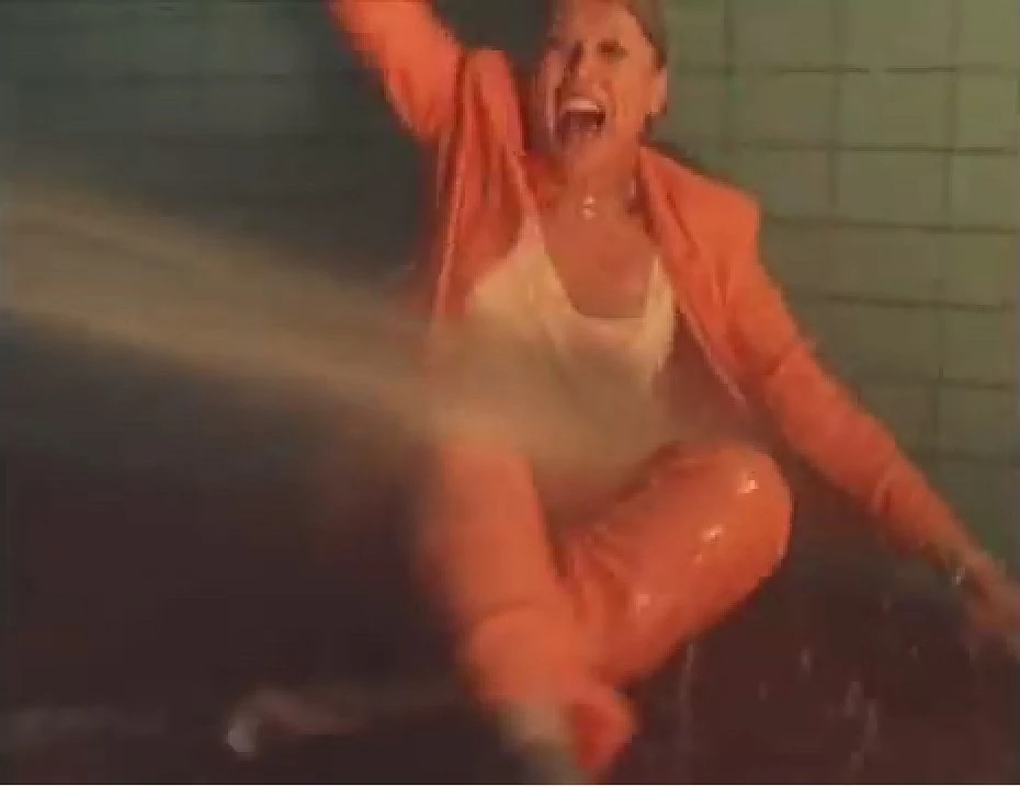 Knull's favorite "correction" for troublesome inmates is the Hydro-Therapy room. She straddles a fire hose and "cools off" a girl.