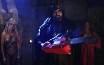 Jack and Samantha head to the temple where the freaky cult is planning on making the ultimate sacrifice. Samantha performs the virgin dance of the double chainsaw, who then takes the chainsaw to "The Master". Mercedes grabs a chainsaw and the two engage in a little girl-on-girl buzz saw action. Samantha comes out triumphant by chopping Mercedes' left arm, then disembowels her and Mercedes is left bloodbathed😭. However, Mercedes and The Master suddenly disappear, setting up a potential sequel.