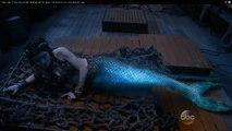 A school of mermaids are attacking the ship the Jolly Roger. Snow White (Ginnifer Goodwin) and Emma Swan (Jennifer Morrison) throw a net overboard, and catches one of the Mermaids. The Mermaid starts flapping about like a fish out of water, as she lies on the net that imprisons her.
