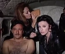 The four sisters rob a bank: Adriana distracts the guards, Dalilah goes into the vault, Patricia gets money from a teller, and Mireyra holds the president's interest by removing her fur coat to reveal her naked torso. In addition, it appears that Mireyra knocks out the bank president’s secretary (Ana Maria Vargas).