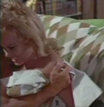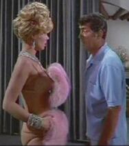 Matt, in the meantime, has a meeting with his personal assistant the aptly named Lovey Kravezit (Beverly Adams). With whom he is apparently having a very open no holds barred sexual relationship. Miss Kravezit appeared nude (covered with bubbles) in the first Matt Helm first movie (The Silencers) in his giant swimming pool size bathtub. Matt and Miss Kravezit have a meeting on his couch which finishes off camera after some passionate kissing. Matt then exhausted from his liaison with the always willing Miss Kravezit heads to his own bedroom for some rest.