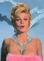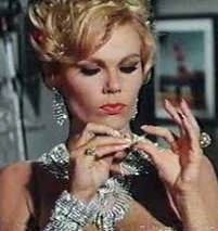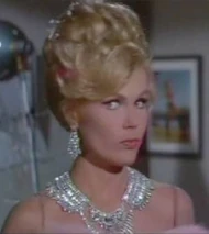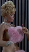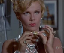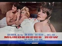 Nancy Kovack was supposed to appear as Miss January in Murderer's Row. Miss Kovack appeared in a similar role as the Voluptuous Blonde Femme Fatale named Barbara in Matt Helm's first movie "The Silencers" 1966. Like Miss January, Barbara seduced Matt Helm and as he was kissing her and was about to make love to her she attempted to slay him but was herself killed before she could succeed. Nancy Kovack was unavailable (as she was getting married at the time of shooting) but she recommended the part to one of her friends so the part of Miss January was played by Playboy model Corinne Cole.