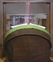 The audience watches as the bed lifts off and we presume that the two slide into the water. All we see is that the beam goes off and there is a large explosion and light coming from the bath. Matt Helm is presumed dead, and ICE throws him a funeral.